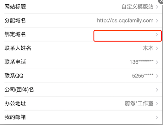 点击 “网站设置”后,弹出如下窗口,点击如图所示的 “绑定域名”,进行绑定