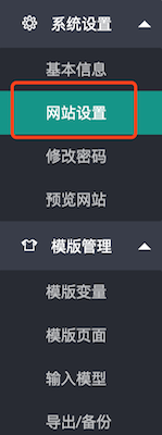 找到左侧菜单的 “系统管理” 功能, 点开,找到其下的 “网站设置”